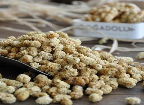 توت خشک میان وعده ی بسیار مناسبی می باشد و در کنار چای بسیار لذت بخش است.