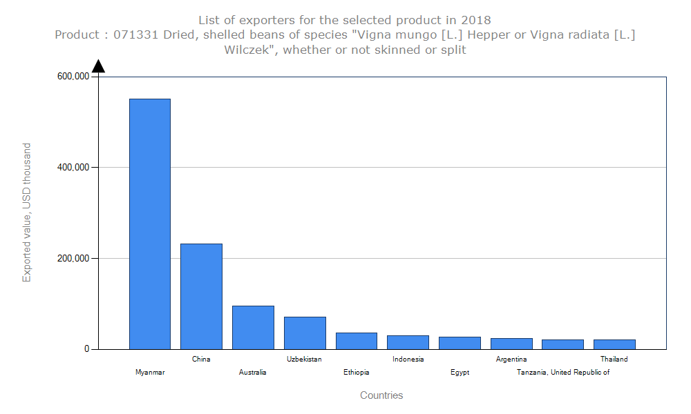 چین، استرالیا، ازبکستان و اتیوپی به ترتیب در رتبه های بعدی صادرات این حبوبات قرار دارند.