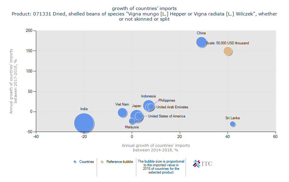 هند در صدر کشورهای واردکننده ی این محصول قرار دارد. ژاپن، اندونزی و چین دومین، سومین و چهارمین کشور وارد کننده ی لوبیا می باشند. چین از عمل Re Export استفاده می کند.