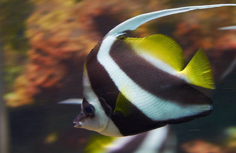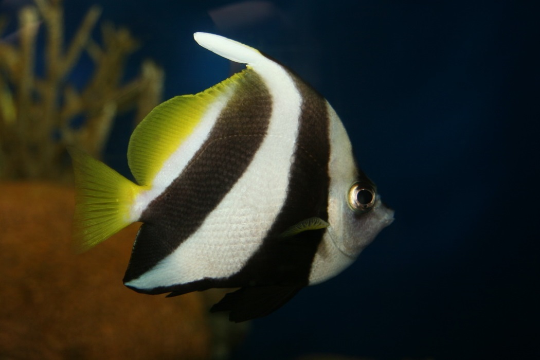 رنگ طبیعی که این ماهی دارد شامل نوارهای عمودی است که تیره رنگ بوده و شبیه به نوارهای بدن گورخر است، شاید این موضوع برای شما جالب باشد که ماهی آنجل شکارچی ماهیان کوچک است و برای آنها طعمه پهن می کند.