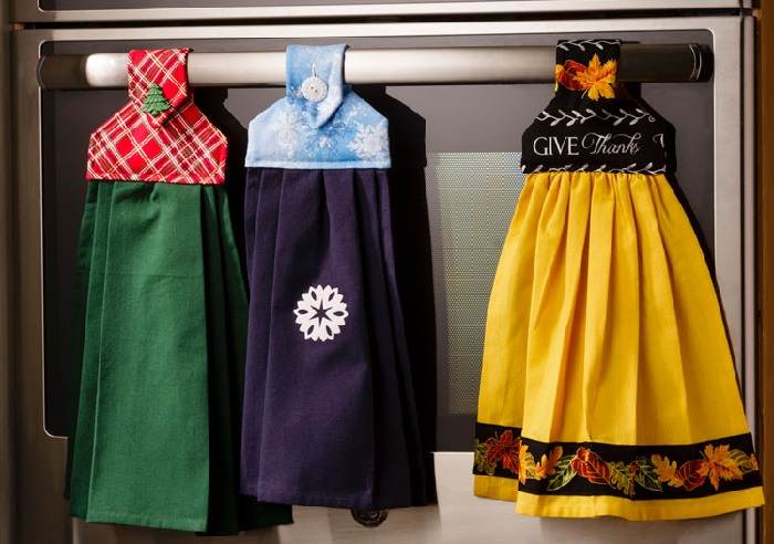 اگر شما جز آن دسته از افرادی هستید که به هنر های خانگی علاقه مندید، یکی از هنرهای پر در آمدی که می توانیم به شما معرفی کنیم، حوزه ی تزئینات حوله و دستمال های آشپزخانه است که معمولا برای جهیزیه عروس کاربرد های فراوانی دارد. شما می توانید با وسایل بسیار ساده مانند نمد های رنگی، مروارید ها و نخ های رنگی بر روی حوله های ساده و بدون طرح، اشکال زیبایی را خلق کنید.