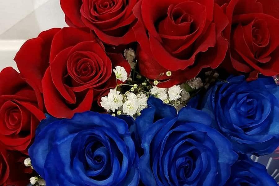 دسته گل رز آبی و قرمز