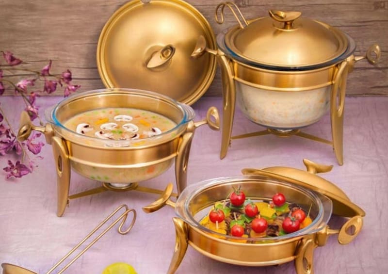در میهمانیهایی که تنوع غذا زیاد است و بین سرو غذاها فاصله می افتد و امکان سرد شدن غذاها وجود دارد می توان از سوفله خوریها استفاده کرد. در اصل علت نامگذاری این ظرفها به این نام این می باشد که سوفله خوریها در ابتدا برای گرم نگه داشتن نوعی دسر بنام سوفله ساخته شدند که یک نوع دسر پف دار می باشد که در صورتی که سرد شود پف خود را از دست می دهد.