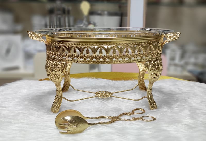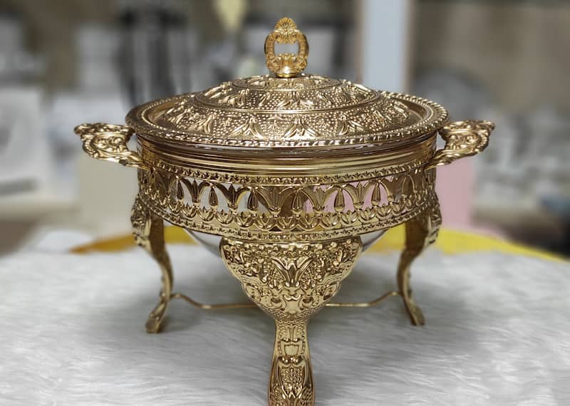 استفاده از سوفله خوریهای برنز در کنار این ظروف مسی جلوه بسیار زیبایی دارد و زیبایی خاصی را به چیدمان میز غذاخوری شما می دهد. جنس ظزف داخل این سوفله خوریها هم از پیرکس می باشد که دارای دربی از همان جنس و یا از جنس پایه ها و بدنه برنزی است.