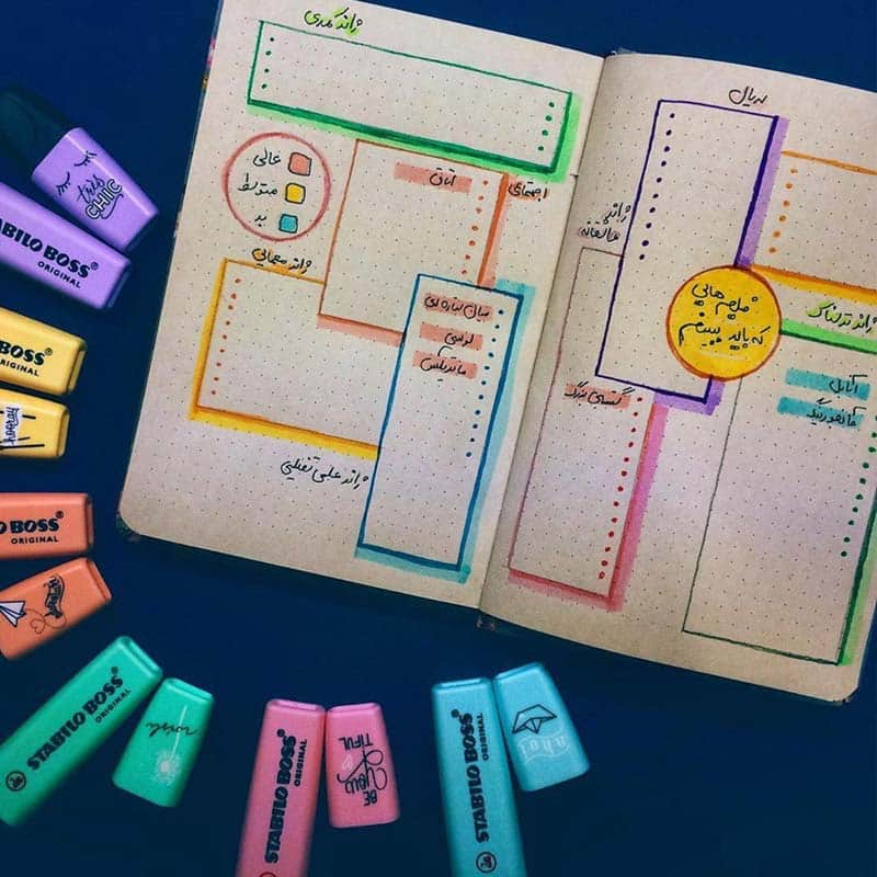 در بولت ژورنال هر صفحه دارای طرح و جداول خاصی برای برنامه ریزی روزانه می باشد.