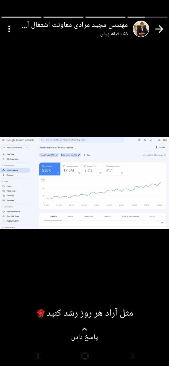 مهندس مرادی معاونت اشتغال آفرینی، مریم سادات میری و هادی امرا از مدیران استراتژیک، سعید زارع عضو شورای سیاستگذرای، سمانه آزادی و رضا حمید پسند از مشاوران تجاری، امیرعزیزپور از نیروهای تامین کالای صادراتی، زهرا داروغه حسینی از بخش پیگیری سفارشات مشتری، راحله معصومی از نیروهای پشتیبانی تخصصی، تصویری از نمودار رشد لحظه ای و صعودی سایت مجموعه را در استاتوس خود منتشر کردند.