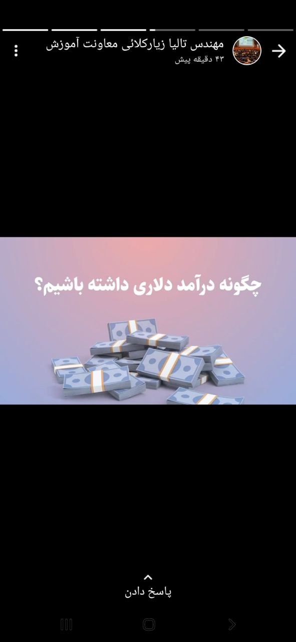 مهندس زیارکلائی معاونت آموزش و دبیر کل شورای سیاستگذاری، حمیدرضا دستوریان و محمدمهدی ادیب از مدیران استراتژیک، نسترن یار موسی پشتیبانی اپلیکیشن، علی غیوثی، محمد قاسمی، فاطمه بصیری و مریم رحیمی از مشاوران تجاری، رضا بهروزی، حسام قهاری و علی آل یاسین از نیروهای فیلم سازان صنعتی، صبا براتی رابط پششتیبان تخصصی، تیزری در رابطه با کسب درآمد دلاری را در وضعیت خود به اشتراک گذاشتند.