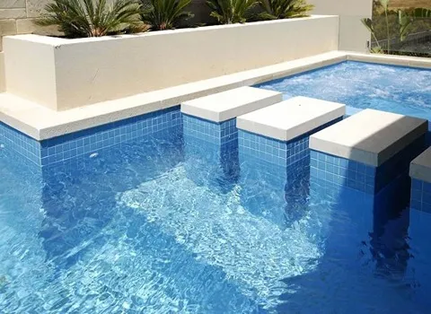 کاشی های استخری عموما به شکل چهار گوش و یا شش گوش میباشند و با ابعاد 5/2*5/2 سانتی متر بر روی تور هایی با ابعاد 30*30 سانتی متر چسبانده میشوند.