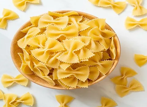 پاستا پروانه ای محصولی ویژه از غلات درجه یک و با کیفیت می باشد که در طعم ساده و سبزیجات در بسته بندی های بهداشتی ارائه شده است، پاستا ها در اندازه ها و ضخامت های مشخصی در بسته بندی های شیک و بهداشتی در دسترس مشتریان قرار می گیرند، این محصول حاوی مواد معدنی مقوی و مورد نیاز بدن همچون کربوهیدرات ها و پروتئین است.