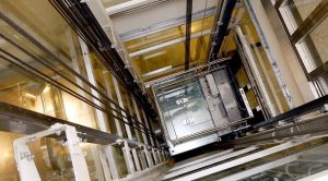 اگر فرمان سمت پایین صادر شود، وزنه ها به سمت بالا رفته و اتاقک به سمت پایین حرکت خواهد کرد. وزنه ها و وزن حداکثر ظرفیت آسانسور به طور تقریبی با هم یکسان می باشند و موتور قدرتی که بر روی آسانسور نصب شده، کابل ها را توسط اهرم ها به حرکت در میاورد و وزنه ها را جا به جا می کند.