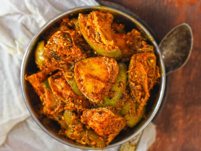 یکی از معروف ترین ترشیهای سیستان و بلوچستان، ترشی انبه است که روش تهیه آن را ما در ادامه برای شما شرح می دهیم تا در صورت دلخواه تهیه کنید و لذت ببرید. مواد لازم برای تهیه این ترشی عبارت هستند از انبه پوشت کنده شده و خرد شده، سرکه سفید، فلفل قرمز تند خشک شده، تخم گشنیز آسیاب شده، سیر، آبلیمو، گلپر، نمک و سیاهدانه. انبه را از وسط نصف می کنیم و هسته آن را خارج می کنیم و سپس به اندازه دلخاوه آن را برش می زنیم و به نمک و آبلیمو آغشته می کنیم. سرکه را بر روی حرارت قرار می دهیم و اجازه می دهیم تا به نقطه جوش برسد و در ادامه سیر و تمر هندی را درون آن می ریزیم و در مرحله بعد ادویه جات را به آن اضافه می کنیم و بعد از 5 دقیقه شعله را خاموش می کنیم. در مرحله آخر انبه را داخل ظرف می ریزیم و سرکه ها را بر روی آن میریزیم و درب آن را محکم می بندیم.