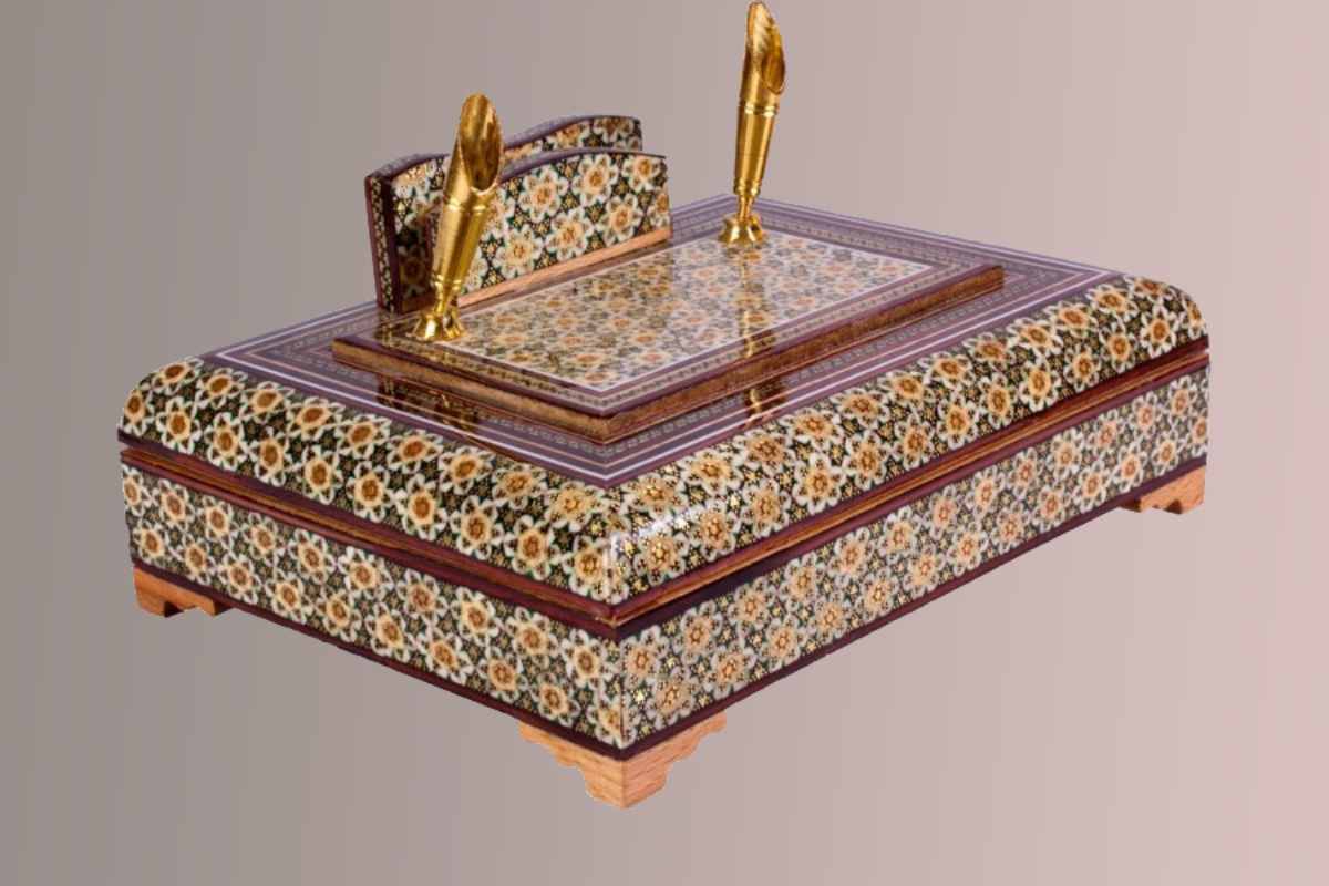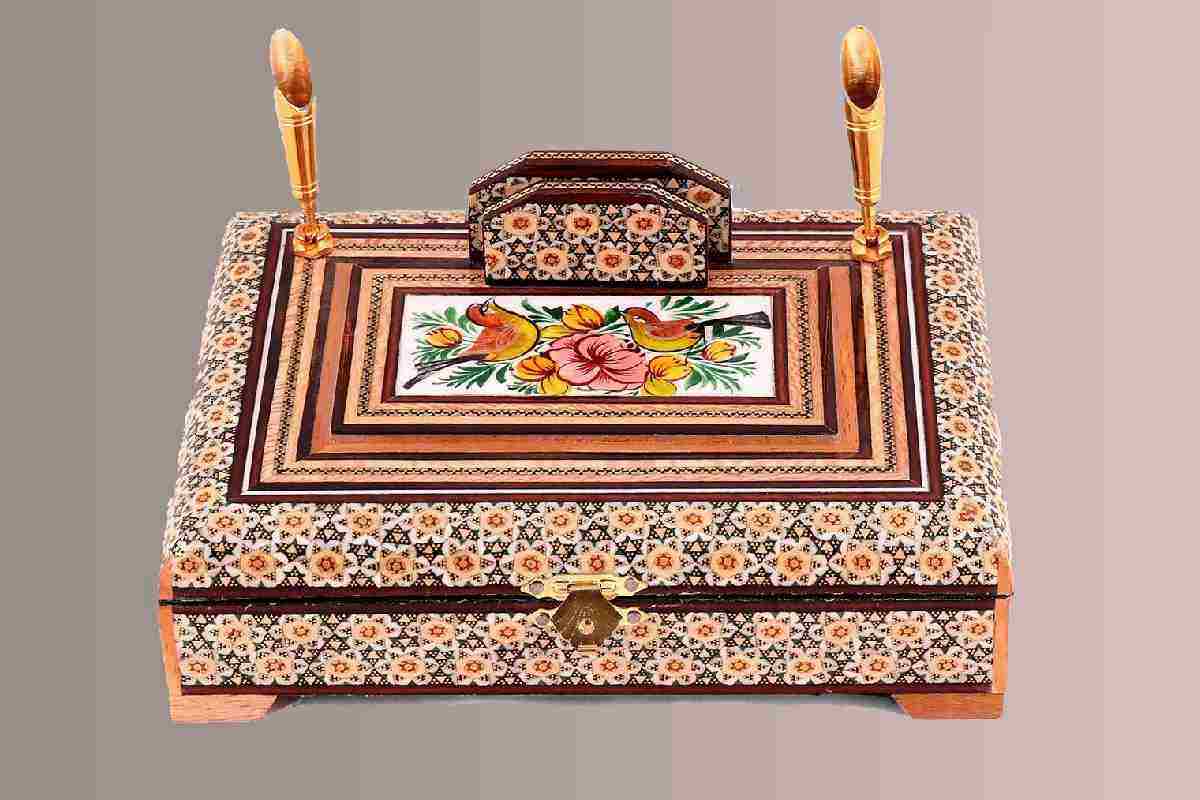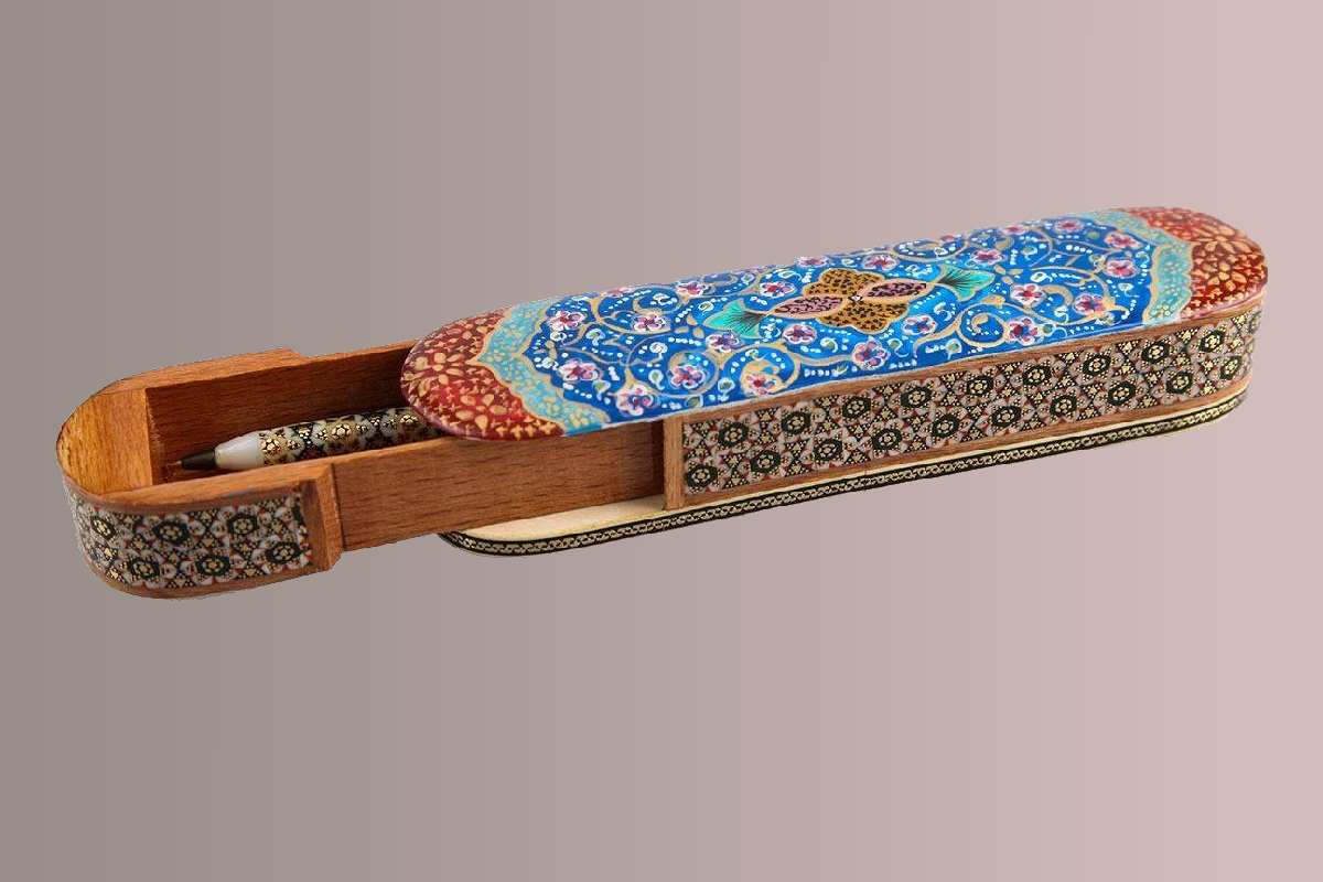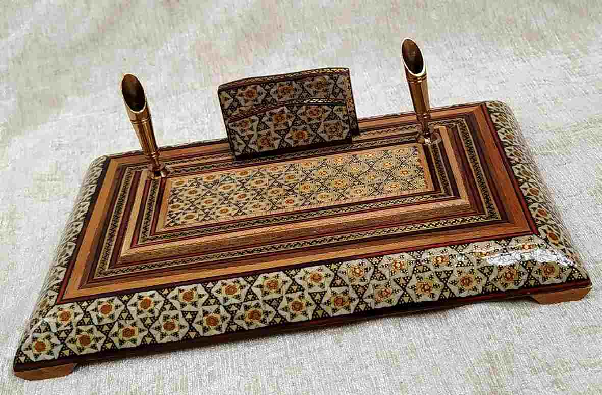 از سری کالاهای با ارزش با شکل ظاهری زیبا به علاوه دو عدد جای قلمی متحرک می باشد و این کالا از مهم ترین صنایع دستی و هنرهای دستی لوکس ایران می باشد. سپس از خاتم کاری و زیباسازی در جهت بالا بردن کیفیت برخی از کالاها استفاده می کنند عبارتند از: