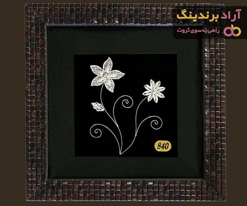 خرید تابلو گل نقره با ابعاد و طرح های زیبا در اصفهان عبارت است از یک تابلو به ابعاد ۱۰×۳۰ مستطیل شکل و درروی تابلو شیشه قرار میگیرد که با چسب و منگنه نصب میشود.