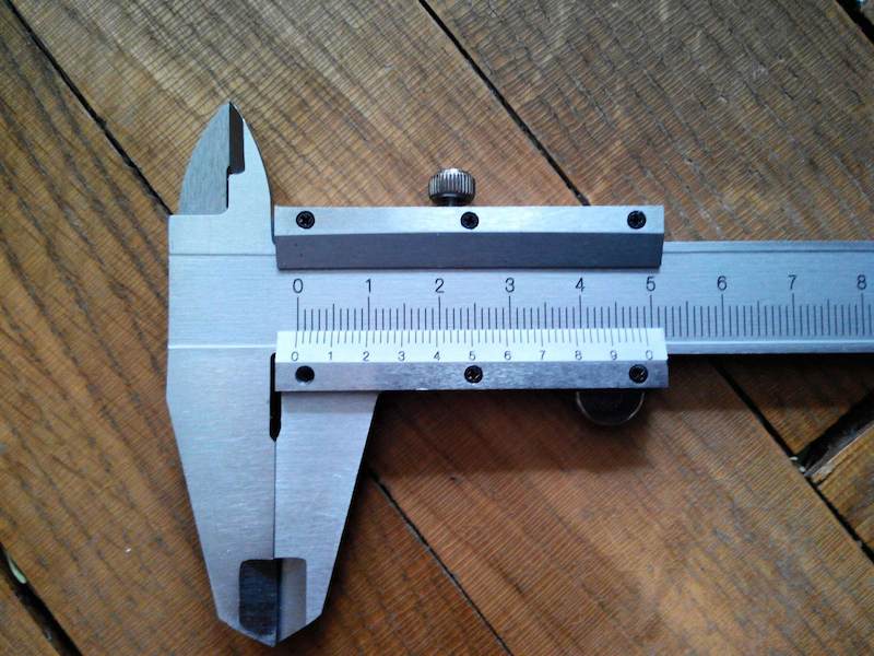ابتدا اعدادی که دقیقا در هر دو خط کش در یک امتداد هستند را می خوانیم، اگر تمامی اعداد در یک امتداد بودند عدد شما اعشار ندارد. اما اگر صفر خط کش ورنیه با خطوط خط کش اصلی در یک راستا نبودند باید تعداد خطوط قبل از قسمتی که دقیقا بر روی هم قرار دارند را بشمارید و در دقت کولیس که در اینجا 0.1 است ضرب کنید تا عدد اندازه گیری به دست آید.