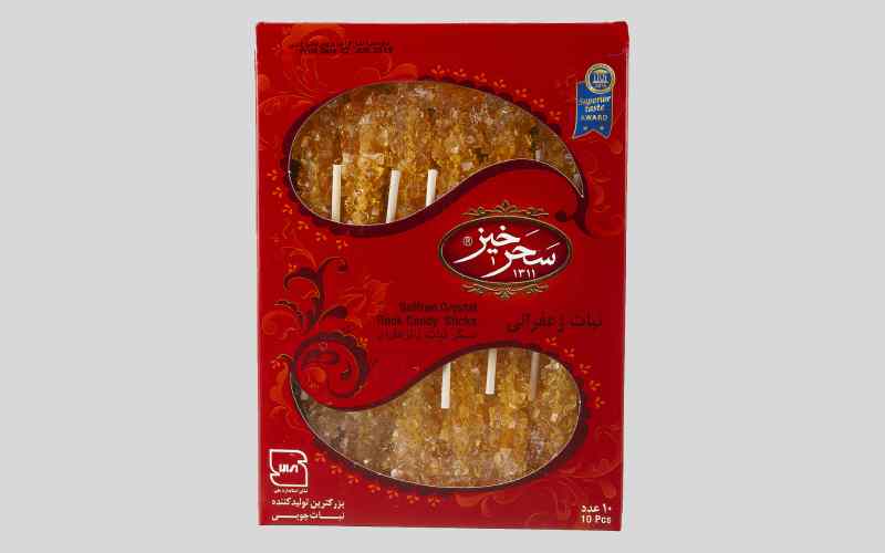 نبات نی دار زعفرانی سحرخیز که علاوه بر شیرینی و خواص نبات سفید، رنگ زیبا و خواص بی شمار زعفران نیز به آن افزوده شده است.