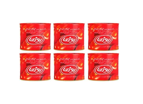 سر درب رب قوطی های روژین برای راحتی مصرف کننده گیره فلزی آسان باز شو دارند، توجه به این نکته در خرید رب قوطی روژین می تواند به شما در مصرف آسان رب کمک کند.