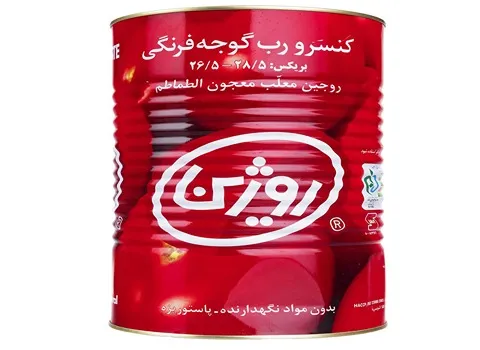 رب قوطی روژین حاوی رب گوجه فرنگی خوش رنگ و خوش مزه است که از گوجه فرنگی مرغوب پوست نازک بدون کپک تهیه می شود.