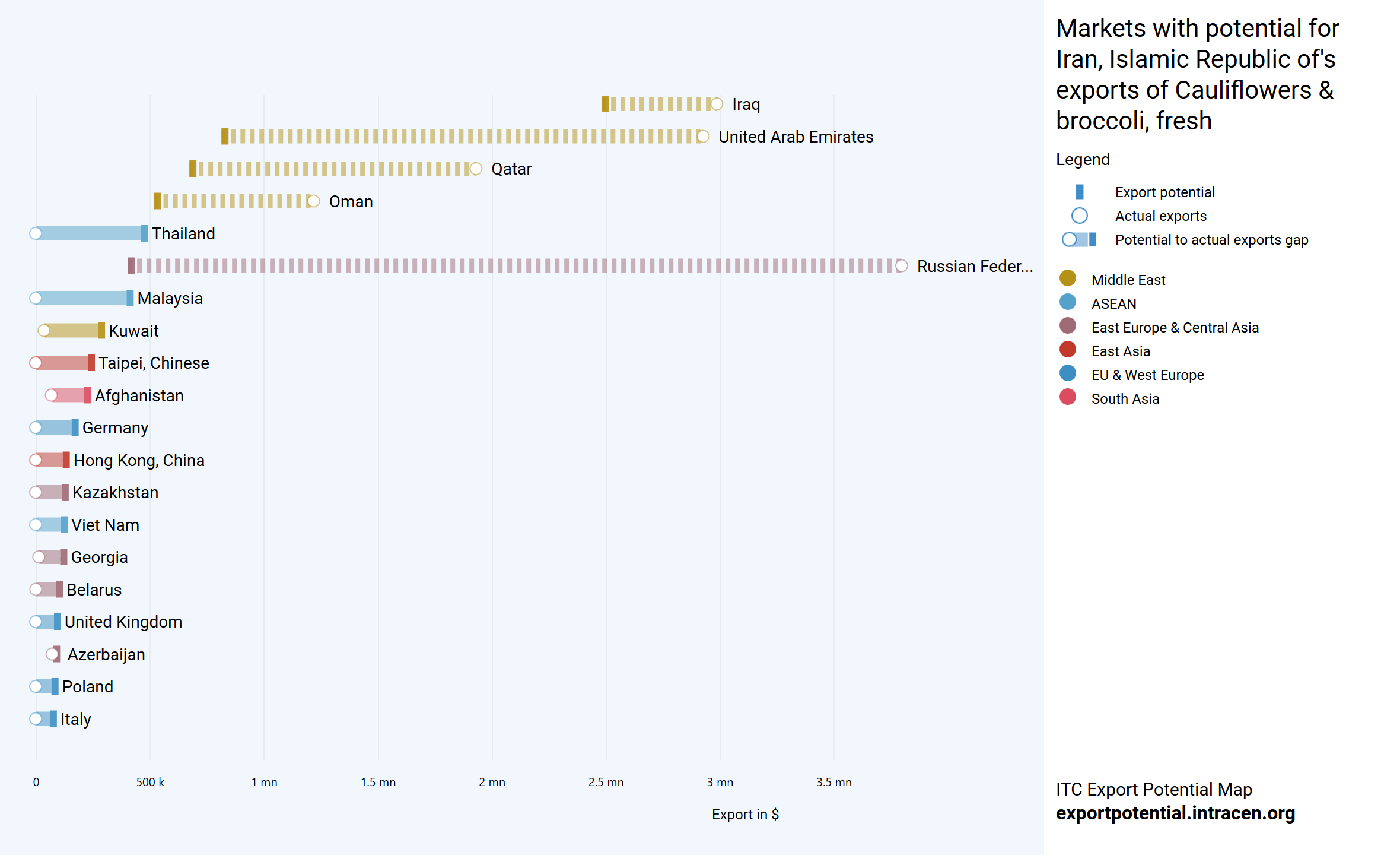صادرکنندگان گل کلم می توانند تمرکز خود را روی کشورهایی نظیر تایلند، مالزی، کویت، افغانستان، چین و حتی آلمان بگذارند.