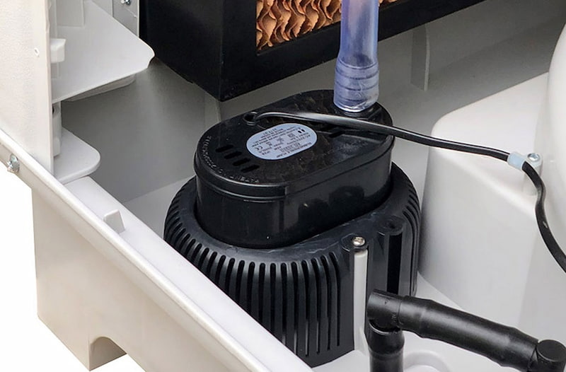 در برخی از مناطق کشور که سختی آب در آن قسمتها بالا می باشد، استفاده از پمپ تخلیه کولر گازی باعث می شود که آب داخل کولر به صورت اتوماتیک و خودکار خارج شود و موجب آسیب رساندن به کولر نشود، پد سلولزی که در این کولرها استفاده می شود دارای الیاف ای بوده که خاصیت جذب کنندگی آب و بسیار بالایی دارند، و استفاده از این نوع پد سلولزی باعث می شود که میزان جذب آب بالا رفته و باد ناشی از کولر خنک تر شود.