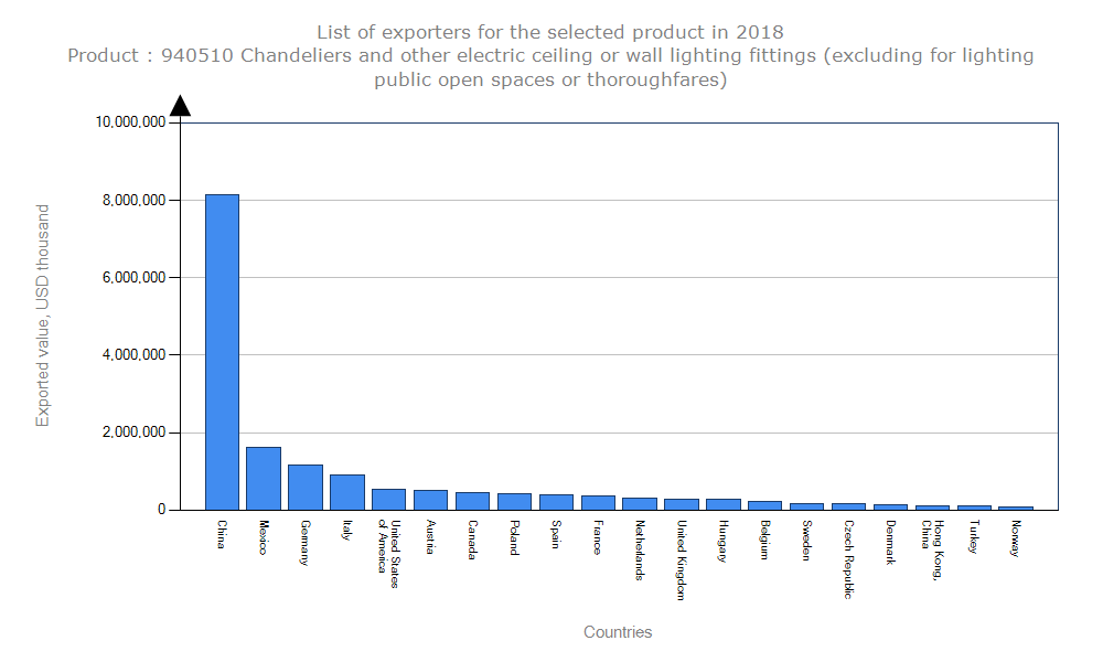 آمار صادرات لوستر هدف شناسایی رقبا کار در بازار جهانی است.