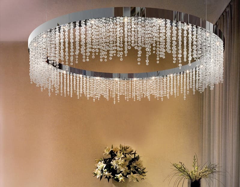 این نوع از محصول از نوع لوسترهایی می باشد که دارای تعداد بسیار زیادی کریستال بسیار شفاف که به صورت آویز مانند برای فضاها و مکانهای که دارای ارتفاع بلند سقفی می باشد استفاده می شود که دارای سایزبندی و مدلها و تنوع بسیار زیادی می باشد.