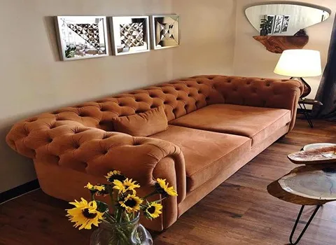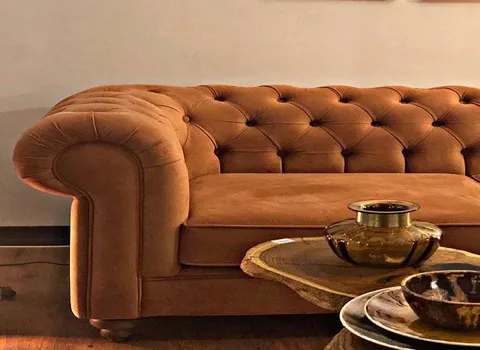 روکش مبل چستر را از بین پارچه های گران بها و یا چرم های با کیفیت انتخاب می کنند از طرفی نیز برای روکش کردن مبل، از دوخت لمسه استفاده می کنند که