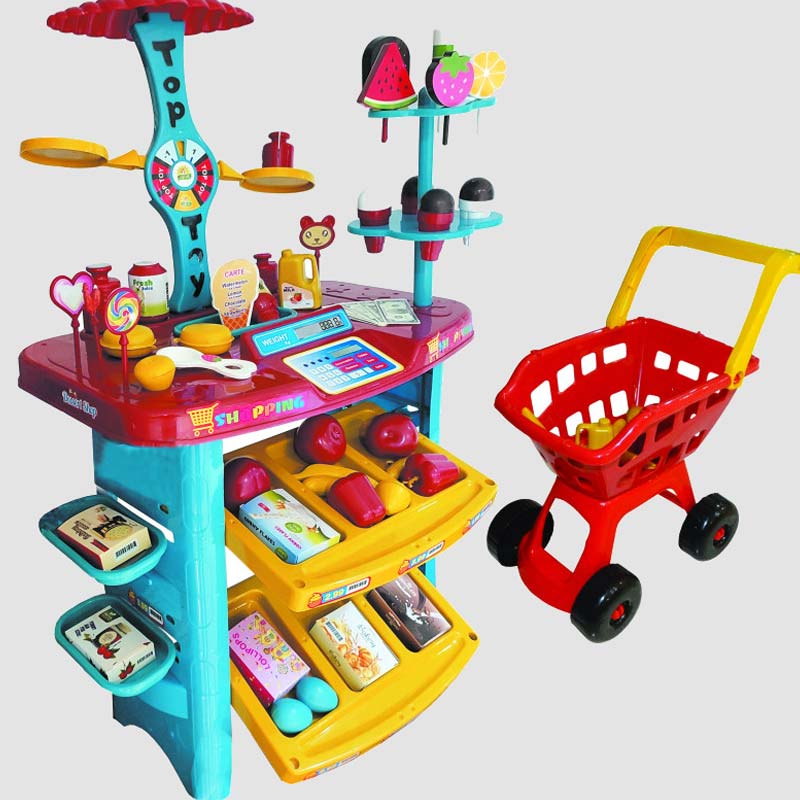 وجود چرخ خرید کوچک و پول های کاغذی برای خرید و فروش حسی از بزرگ شدن را به کودک القا کرده و اعتماد به نفس را در کودکان افزایش می دهد.