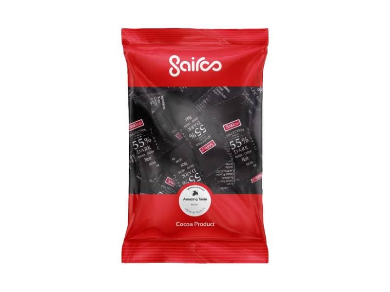 با توجه به اینکه شرکت سایرو شکلات با درصدهای مختلف کاکائو را تولید کرده است حتما به وجود عدد ۵۵ درصد بر روی شکلات توجه نمایید.