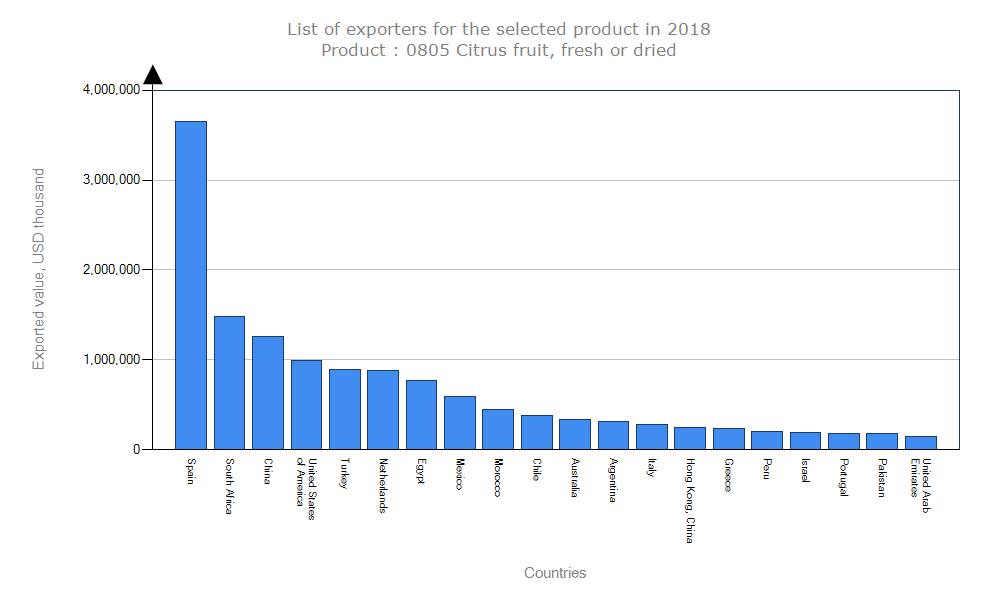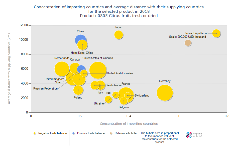 میانگین فاصله از کشور وارد کننده: ۳,۹۳۳ KM آمار واردات مرکبات هدف شناخت متقاضیان و پتانسیل ها در بازار جهانی است.