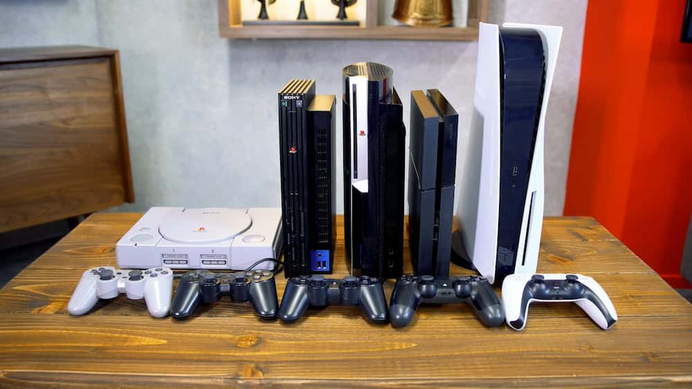 بعد از میکرو و آتاری سگا به بازار آمد و بعد از مدت کمی کنسول بازی پلی استیشن وارد بازار شد و با استقبال خوبی از علاقمندان خود روبرو شد که این دستگاه کنسول معمولا در اندازه کوچکی تولید شده بود و بازیهای آن درون دیسکهای فشردئه مخصوص خود بارگزاری شده بودند و با قرار دادن دیسک درون دستگاه کنسول و روشن کردن آن و اتصال آن به تلوزیون بازی به اجرا در می آمد. طراحی این کنسول نسبت به سگا خیلی پیشرفته تر بود و بازیهای آن کیفیت بهتری داشتند که از لحاظ تنوع بازی نیز تعداد بیشتری تولید شده بود که فوتبال جام جهانی 1998 آن در سطح جهان مورد استقبال افراد زیادی قرار گرفت و این بازی افراد زیادی را به بازی فوتبال علاقمند کرد. البته به جز کنسولهای بازی و بازی فکری دخترانه نمونه های مینیاتوری و دستی این کنسولها در بازه ای از زمان تولید و خیلی مورد استقبال افراد و به ویژه کودکان قرار گرفت که در هر مکانی به صورت همراه می توانستند با آن بازی کنند و بازیهای آن معمولا مشابه بازیهای آتاری و میکرو بود.