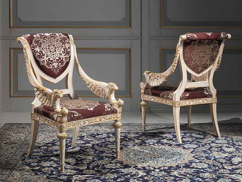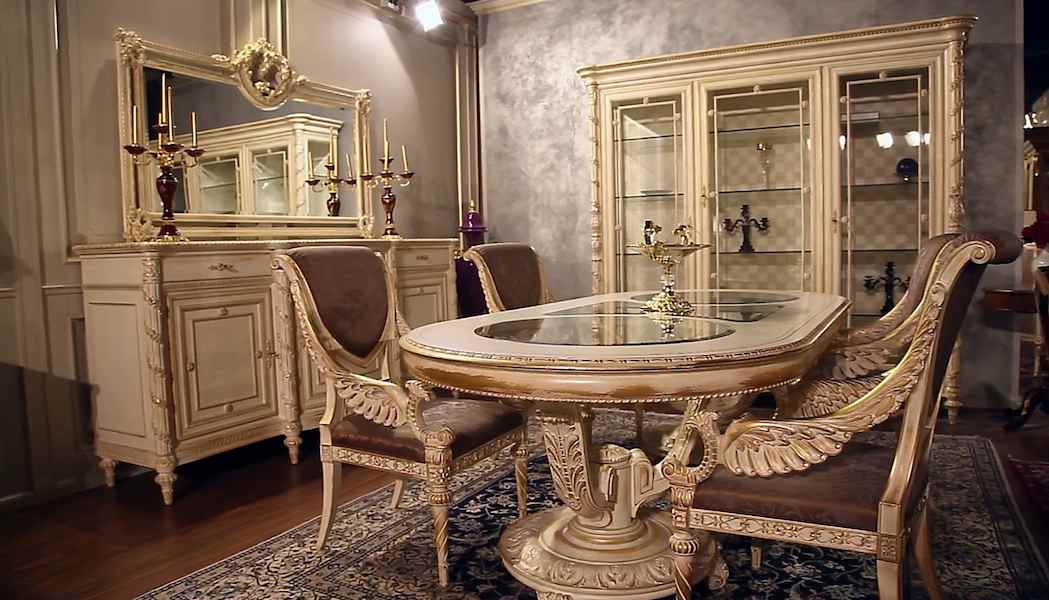 در ساخت این مدل مبلمانها از چوبهای با کیفیت به رنگهای سفید و مبل سلطنتی چوب قهوه ای استفاده شده است. ویژگی که این دسته از مبلهای کلاسیک دارند شامل موارد زیر می باشد:
