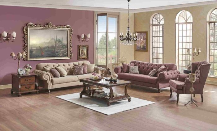 در مرود رنگبندی هم غالبا این مبلها در رنگهای خنثی تولید می شوند تا علاوه بر سادگی، کاربرد آنها بالاتر باشد. برای تزئین خطوط منبت کاری هم بیشتر از طیف رنگی طلایی استفاده می شود. از دیگر ویژگیهای این مبلها می توان به راحت بودن آنها اشاره کرد.