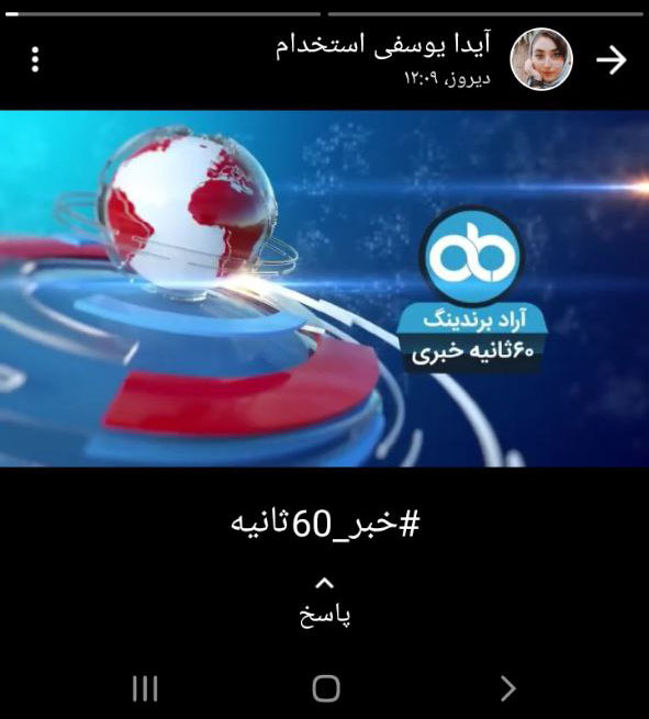 ندا سادات اهل دیری از همکاران در واحد محتوا، ویدیويی از اخبار 60 ثانیه روز را در استاتوس خود قرار داد.