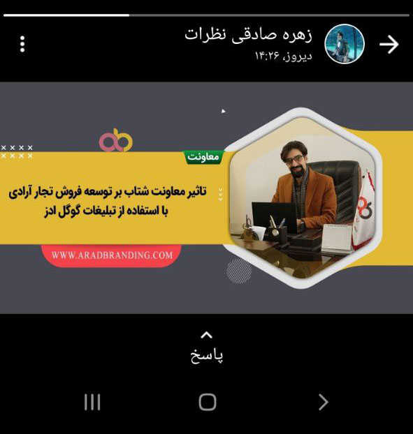 پریسا جمالی از همکاران بخش سایت آرادبرندینگ، یکی از خبر های آموزش سایت را در استاتوس خود به اشتراک گذاشت.