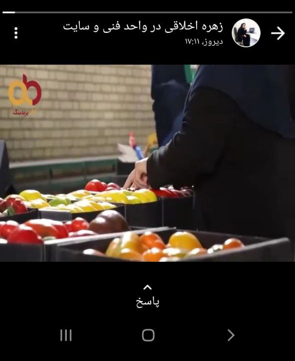 عطیه فیروزی از بانوان فعال در واحد فنی و سایت، ویدیویی از مصاحبه با تجار طرح سه خانم سپیده افشاری، در وضعیت واتساپ با همکاران خود به اشتراک گذاشت.