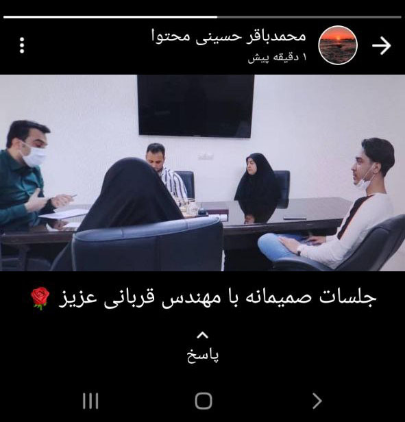 محمد باقر حسینی از کارمندان پویا در واحد محتوا، تصویری از جلسه صمیمانه مهندس را در وضعیت خود منتشر کرد.