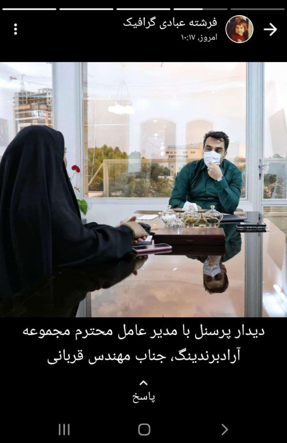 محبوبه پناهی از همکاران بخش گرافیک مجموعه، عکسی از رئیس هیئت مدیره را در استاتوسی به تصویر کشید.