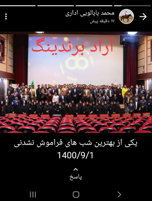 محمد بابالویی از همکاران فعال در معاونت اداری، تصویری از همایش خانواده بزرگ آرادبرندینگ را در استاتوس خود قرار داد.