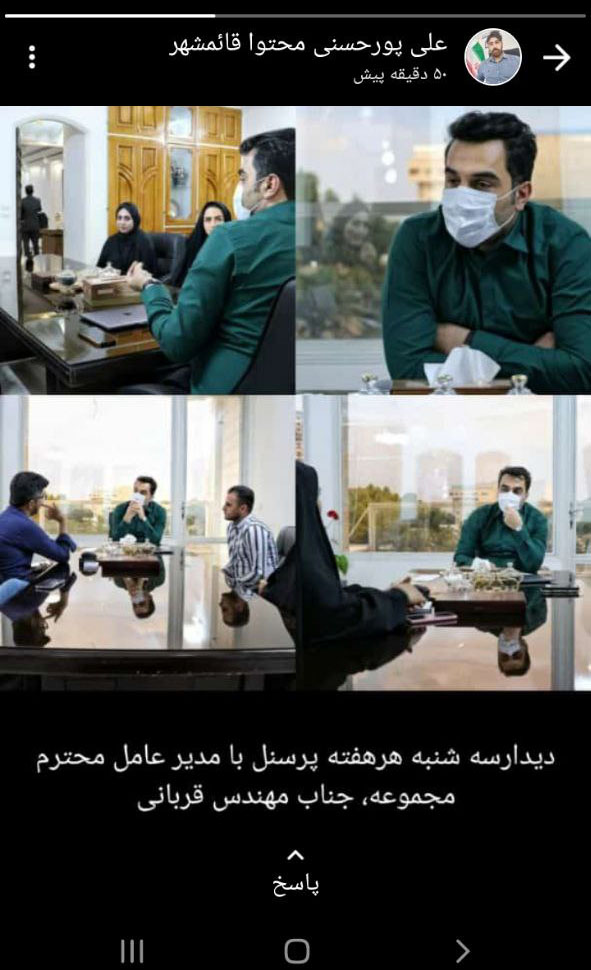 علی پور حسنی از کارمندان مشغول در واحد محتوا، تصویری از دیدار سه شنبه پرسنل با مدیر عامل محترم مجموعه را در وضعیت خود به نمایش گذاشت.