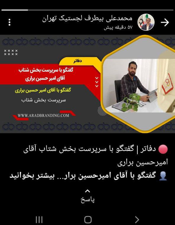 محمد علی بیطرف از پرسنل مشغول در شعبه تهران، تصویری در خصوص اخبار دفاتر را در وضعیت خود درج کرد.