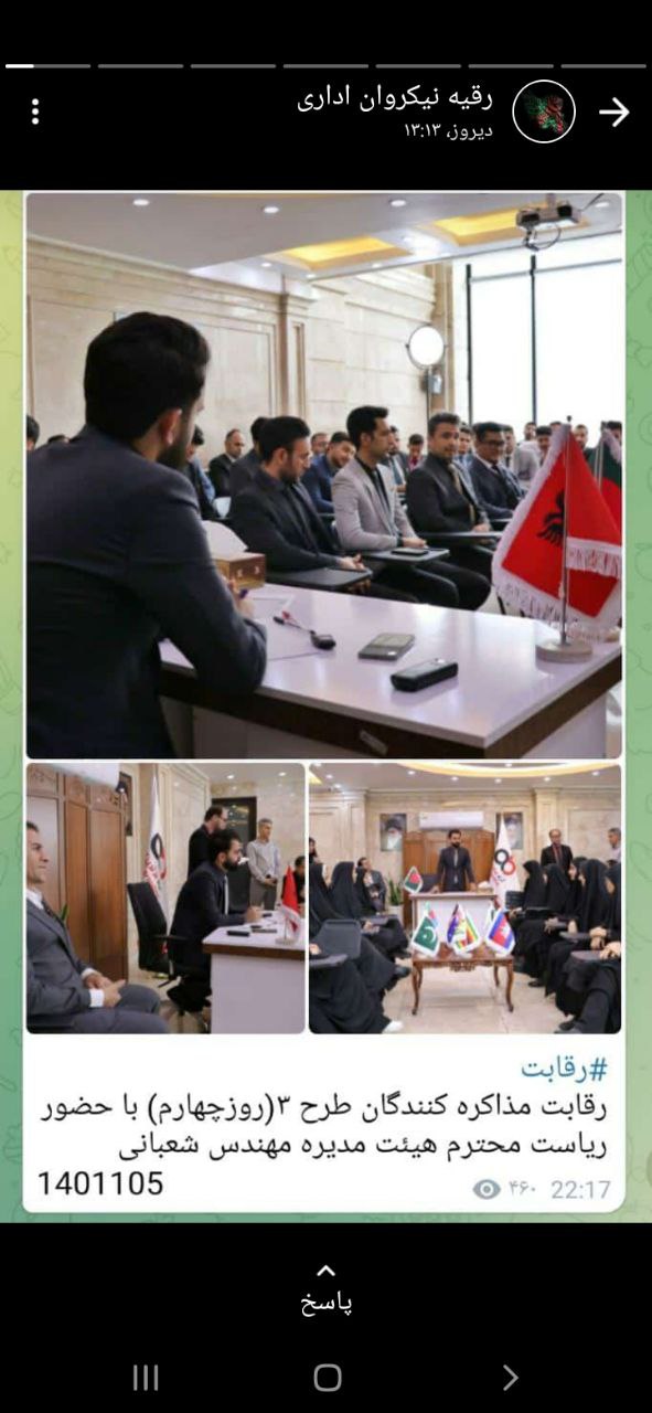 رقیه نیکروان از پرسنل مشغول در معاونت اداری، تصویری در خصوص رقابت مذاکره کنندگان طرح سه با حضور رئیس محترم هیئت مدیره را در استاتوسی به نمایش گذاشت.