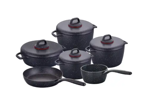 دسته های متصل به این محصولات از جنسی بسیار مرغوب می باشد که در طولانی مدت دچار زنگ زدگی نمی شود و این ظروف حرارت را به گونه ای یکنواخت در سطح خود پخش می کنند که سبب می شود مواد غذایی به طور کامل در این ظروف بپزند.