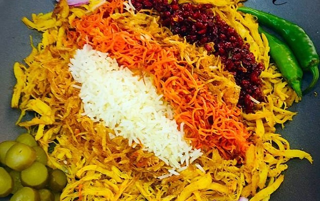 همچنین سینه مرغ و پیاز تیکه شده و انواع ادویه رو باهم داخل ریخته و روی حرارت قرار دهید و وقتی که سینه مرغ پخته شد به آن خلال پسته و بادام و همچنین زغفران اضافه کنید و سپس هویچ و مرغ رو باهم مخلوط کرده و مواد هویچ و جوجه را لا به لای برنج قرار داده و دوباره روی حرارت قرار دهید تا بپزد و بعد از پخت آن را سرو کنید.