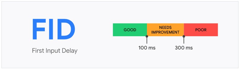 - FID مخفف First Input Delay است و پارامتری است که برای اندازه گیری Load responsiveness است. از Load responsiveness برای اندازه گیری سرعت لود صفحه و اجرای جاوا اسکریپت های لازم برای پاسخگویی به تعامل کاربر استفاده می شود. هر چه کاربر بتواند سریعتر با صفحه تعامل داشته باشد،