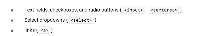 - به طور عمده ، هر چیزی که باعث تعامل با عناصر html زیر شود: