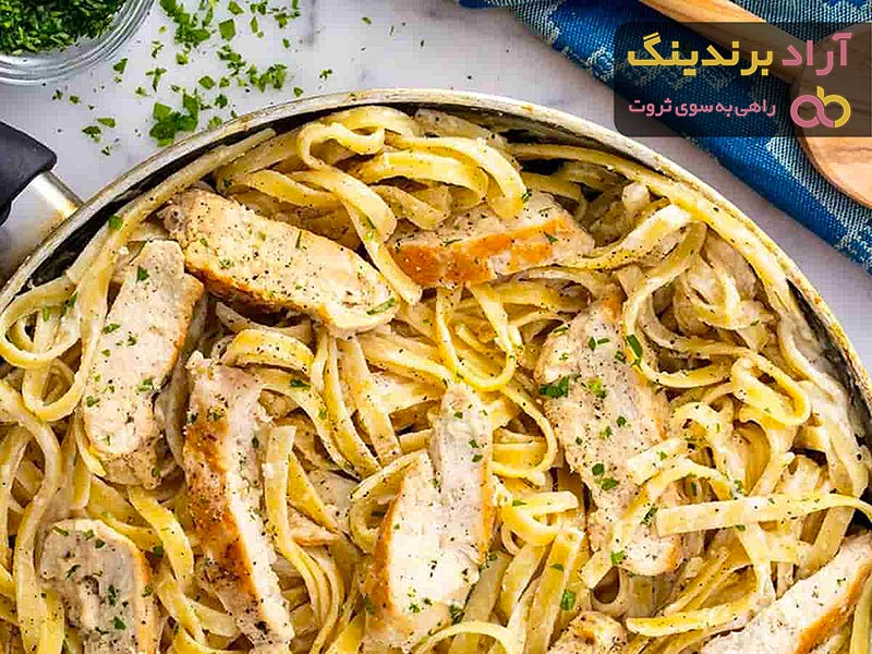 در ادامه چند قطره آبلیمو برای حفظ کردن رنگ سفید قارچ به آن اضافه می کنیم و می گذاریم کمی بپزد و سپس مرغهای ریش ریش شده را با سسی که درست کردیم مخلوط می کنیم و خامه و شیر را داخل ماهیتابه می ریزیم و می گذاریم تمام مواد با هم بپزند. پنه را در آب در حال جوش می ریزیم و می گذاریم تا کمی نرم شود و سپس آبکشی می کنیم و به سس پاستا اضافه می کنیم و چند دقیقه هم می زنیم و جعفریهای از قبل خورد شده را روی پاستا می ریزیم و پاستای خوشمزه ی ما آماده است نوش جان.