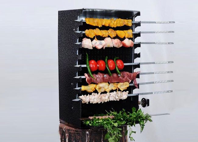 کباب پزها در دو مدل ایستاده و میزی در بازار فروش موجود هستند و شما با توجه به نیازتان می توانید نوع متناسب را خریداری نمایید. کباب پز دادلیسان و دستگاه مرغ بریان مدل هدیه در مدل ایستاده در بازار موجود است و توسط عرضه کننده های اصلی این محصول به فروش می رسد. این کالا دارای 14 عدد سیخ اصلی است و 14 عدد به عنوان اشانتیون در زمان خرید به شما واگذار می شود. کباب پز دادلیسان بدون بو می باشد و دارای سیستم چرخان سیخ به صورت اتومات و دستی را دارد و بیشتر در رستورانها و فست فودیها می باشد. این کالا به گاز شهری وصل می شود و به دلیل استفاده نکردن از برق برای مصرف کننده چرخه اقتصادی خوبی به همراه دارد. در قسمت سقف این کباب پز دریچه ای را ایجاد کرده اند تا برای خروج دود و هوایی که در زمان پخت از کبابها خارج می شود بتواند هواکشی قرار گیرد تا بوی غذا وارد فضای شما نشود. در دو طرف این کالا دربهای تعبیه شده تا بتوان به راحتی سیخها را جا به جا کرد و در کف این کباب پز دارای سینی می باشد که در زمان ریختن روغن از غذا بتوان در آخر کار آن را تمیز کرد و از انباشته شدن روغن و کثیفی جلوگیری نمود. از این گباب پز می توان برای انواع گوشت سفید و قرمز، سیب زمینی، سوسیس، قارچ و هر نوع سبزیجاتی استفاده کرد.