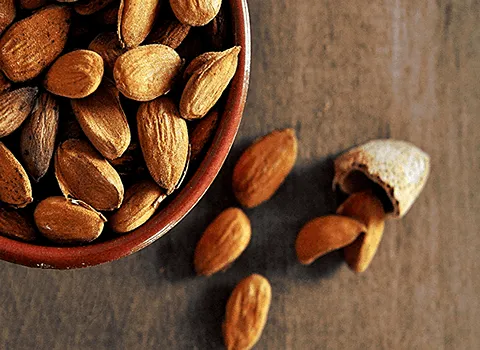 - این بادام نیز دارای مقدار قابل توجهی ویتامین E است که به عنوان یک آنتی اکسیدان قوی عمل میکند.
