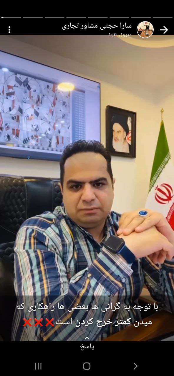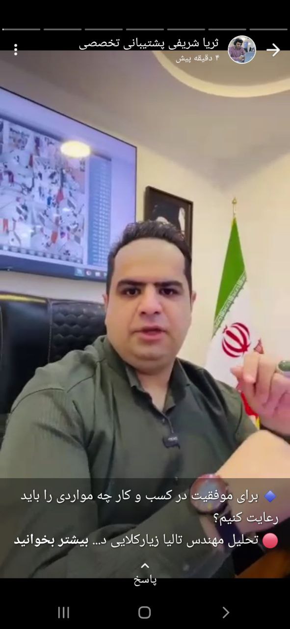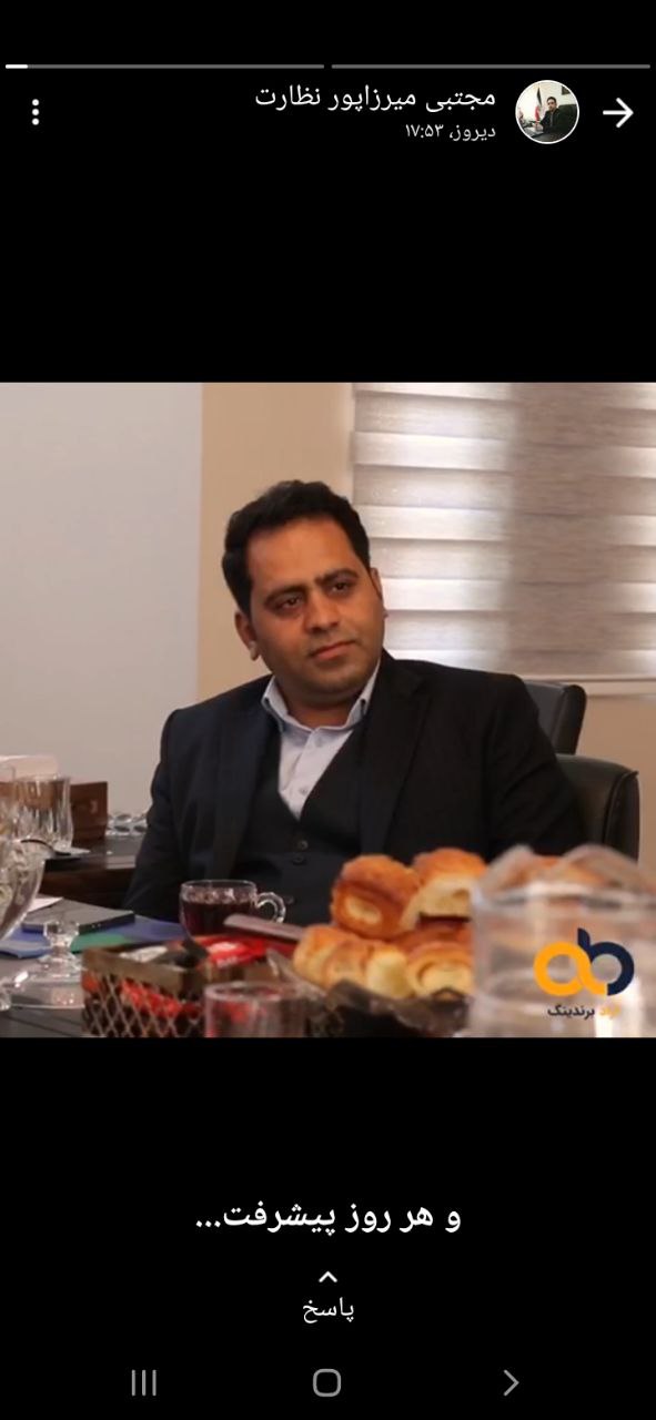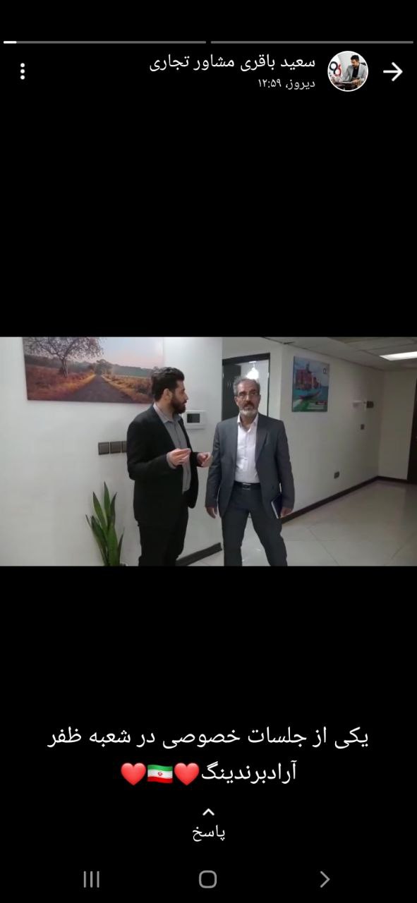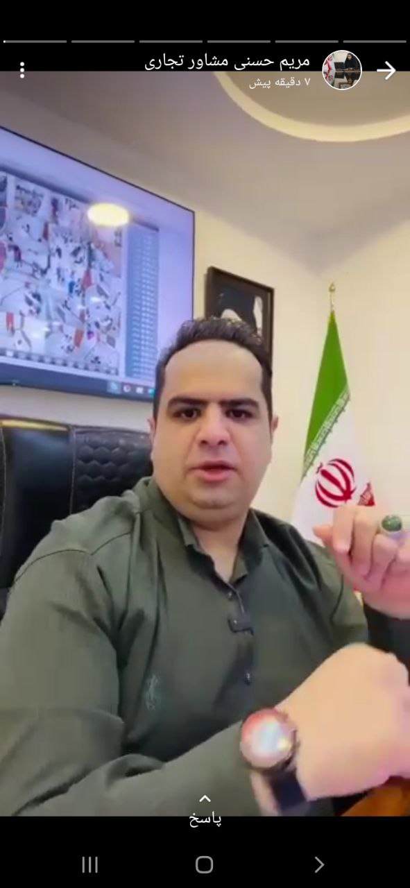 مریم حسنی از دیگر مشاوران تجاری مجموعه، فیلمی از سخنرانی مهندس زیارکلائی را در وضعیت خود قرار داد.