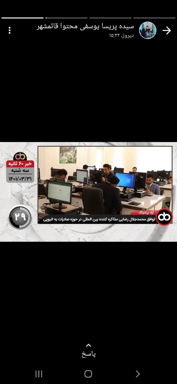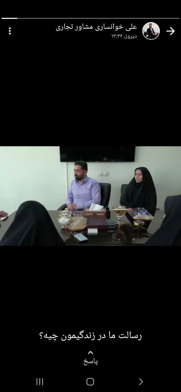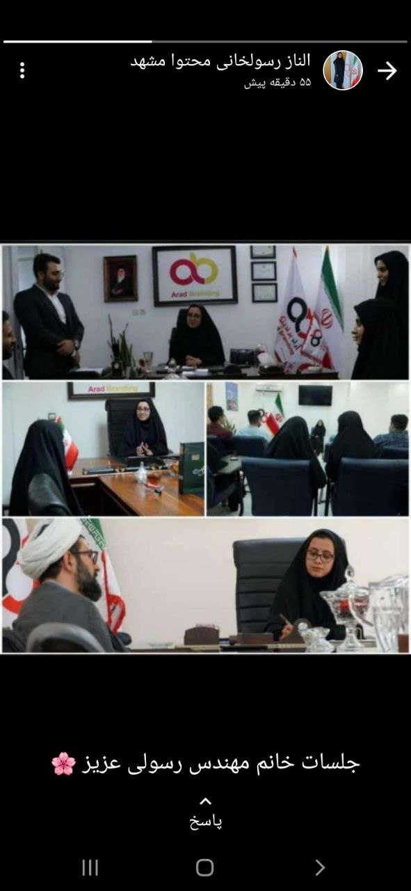 الناز رسولخانی از دیگر همکاران فعال در واحد محتوا، ویدیویی از جلسه خانم رسولی با پرسنل شعبه امام را در وضعیت خود قرار داد.